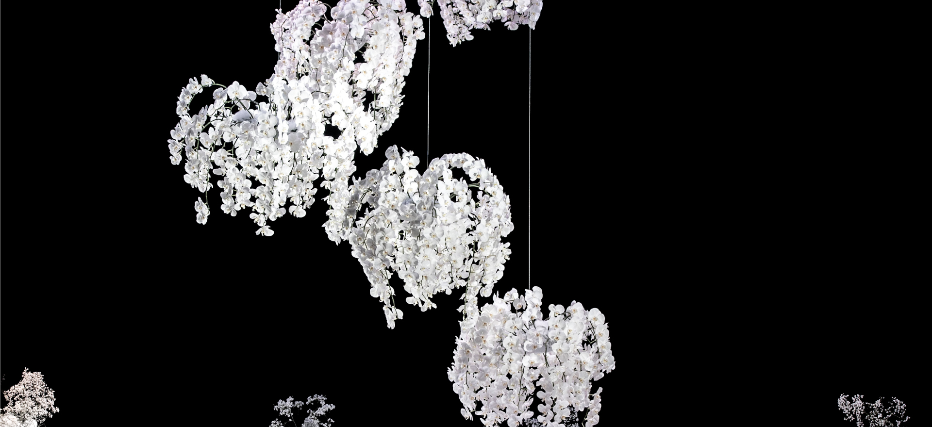 Anggrek bulan putih itu tersusun melingkar dan melayang memenuhi langit-langit sebuah ruangan hotel. Bentuk itu hendak menggambarkan imajinasi Vincent Caesar Jansius Luhur yang tak terbatas. Di bagian dasarnya, perancang interior di Jakarta Utara itu menata bunga baby’s breath membentuk cincin api. “Desain ini merepresentasikan semangat membara yang tak pernah padam,” ujarnya.